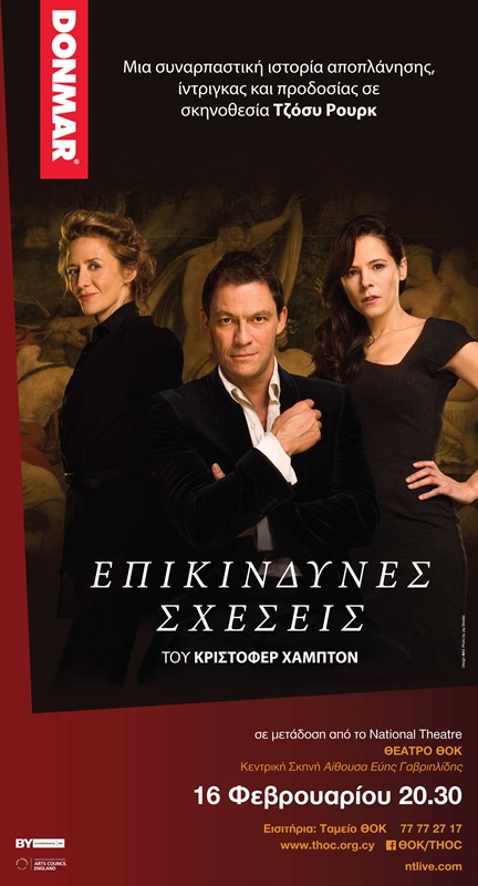 Μετά τις εξαιρετικά επιτυχημένες αναμεταδόσεις του Κοριολανού και του Βασιλιά Ληρ, το Εθνικό Θέατρο της Αγγλίας φέρνει στους κινηματογράφους την πολυαναμενόμενη νέα παραγωγή της θεατρικής σκηνής Donmar Warehouse, Επικίνδυνες Σχέσεις – σε μετάδοση από το θέατρο Donmar του Λονδίνου.