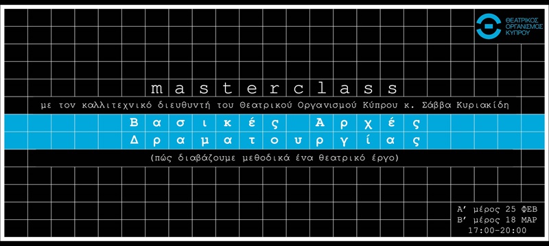 Το σαλόνι των ξένων ανακοινώνει masterclass με τον καλλιτεχνικό διευθυντή του Θεατρικού Οργανισμού Κύπρου κ. Σάββα Κυριακίδη.