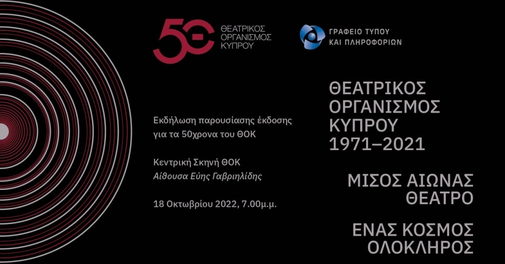 Με την εκδήλωση παρουσίασης της επετειακής αυτής έκδοσης που θα λάβει χώρα απόψε στις 18 Οκτωβρίου 2022 και ώρα 19:00, στην Κεντρική Σκηνή του ΘΟΚ, Αίθουσα Εύης Γαβριηλίδης, ολοκληρώνεται ένας σημαντικός κύκλος εορτασμών αφιερωμένος στην πενηντάχρονη ιστορία του ΘΟΚ.