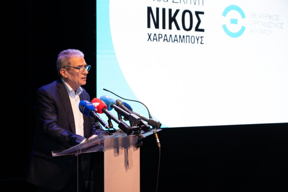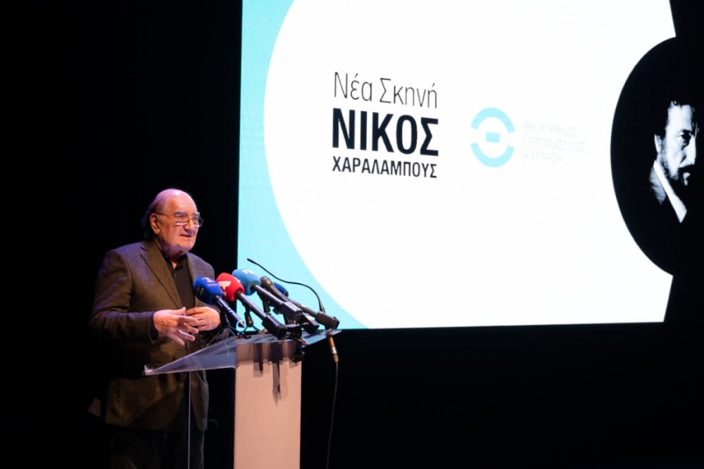 Ο Πρόεδρος του Δοικητικού Συμβουλίου του ΘΟΚ, Δρ. Παντελής Βουτουρής, απηύθυνε σύντομο χαιρετισμό, καλωσορίζοντας τους παρευρισκόμενους στη Νέα Σκηνή που πλέον θα φέρει το όνομα του σπουδαίου θεατράνθρωπου ο οποίος ξεχώριζε για την απίστευτη γενναιοδωρία του, την πίστη και το ήθος προς την τέχνη του. Κλείνοντας, ανακοίνωσε πως το Διοικητικό Συμβούλιο του Οργανισμού αποφάσισε τη θέσπιση Βραβείου Νίκου Χαραλάμπους το οποίο θα απονέμεται σε δημιουργό, για το αρχαίο δράμα.